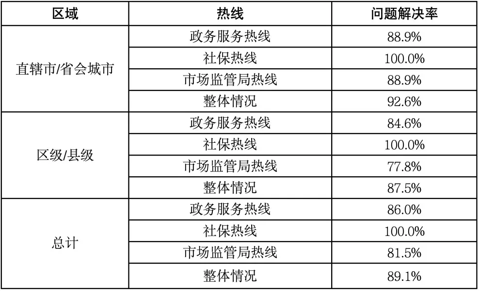 表3 不同城市級(jí)別咨詢熱線問題解決情況