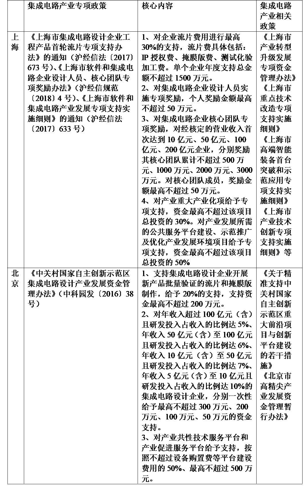 表3:上海及北京集成電路相關政策對比