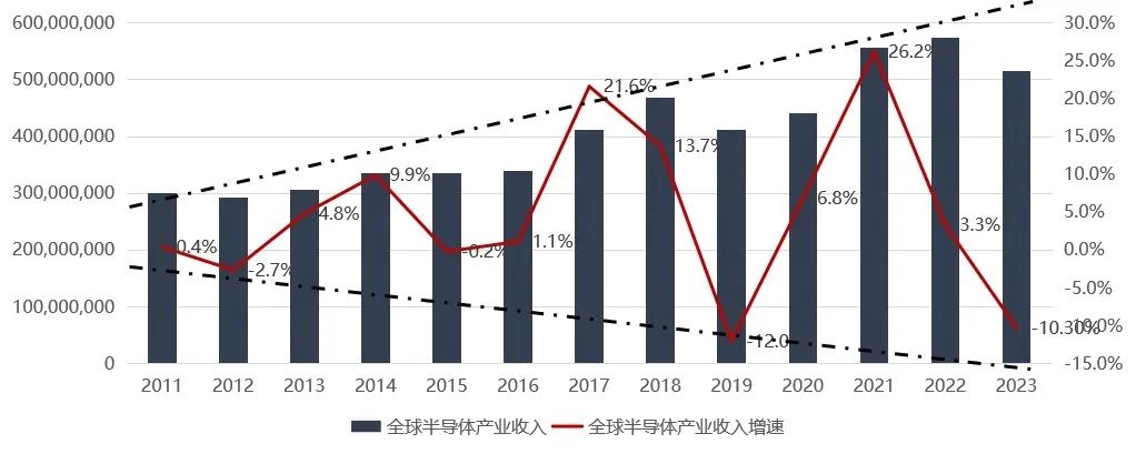 圖2 近10年來全球半導體產業銷售收入及增速變化