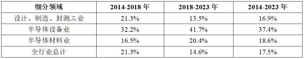 表2 2014-2023年我國集成電路產(chǎn)業(yè)三大主業(yè)銷售收入年均復(fù)合增速情況