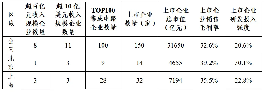 表格信息來源:北國咨根據中國半導體行業協會、北京半導體行業協會、上海集成電路行業協會公開信息整理
