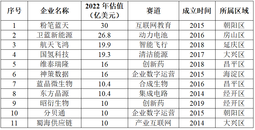 表2 2022年北京市新晉獨(dú)角獸企業(yè)