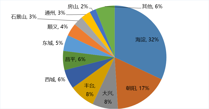 圖1 2019年北京市各區(qū)總部企業(yè)數(shù)量分布