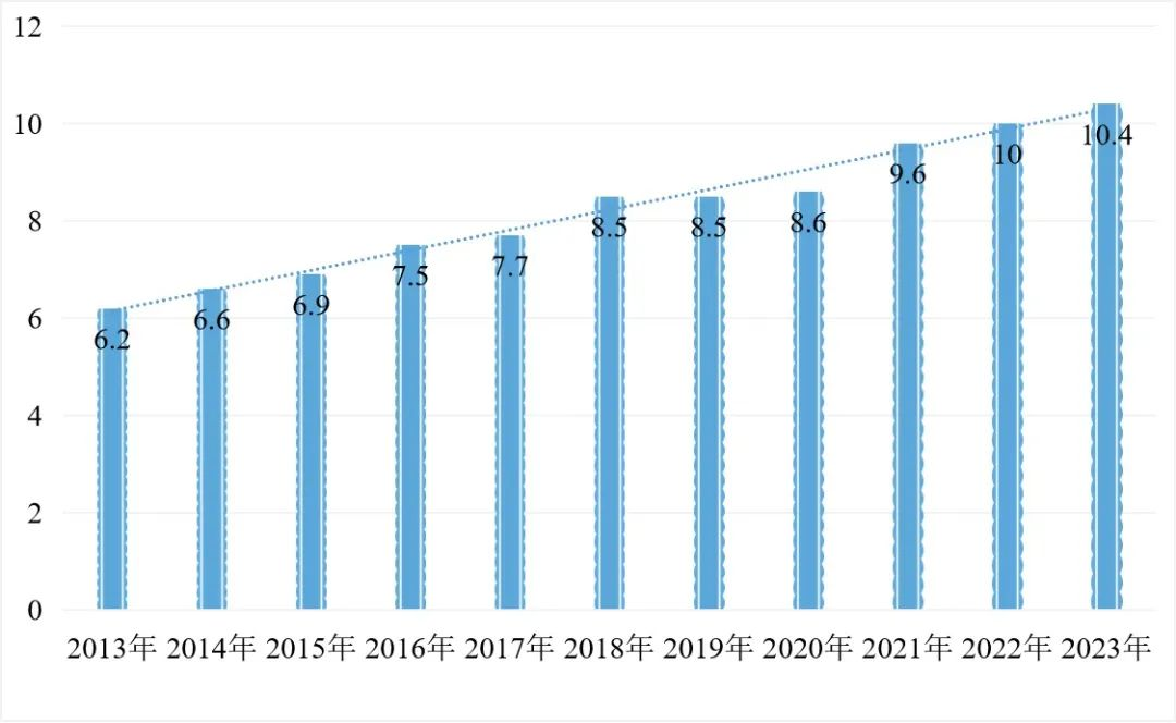 京津冀協(xié)同發(fā)展進(jìn)步顯著。京津冀協(xié)同發(fā)展十周年,三地經(jīng)濟(jì)總量連跨5個(gè)萬億元臺(tái)階,達(dá)到10.4萬億元,是2013年的1.7倍,區(qū)域整體實(shí)力持續(xù)提升。2023年,京津冀工業(yè)增加值達(dá)到2.43萬億元。三地共同打造“六鏈五群五廊”,優(yōu)化區(qū)域協(xié)同布局。