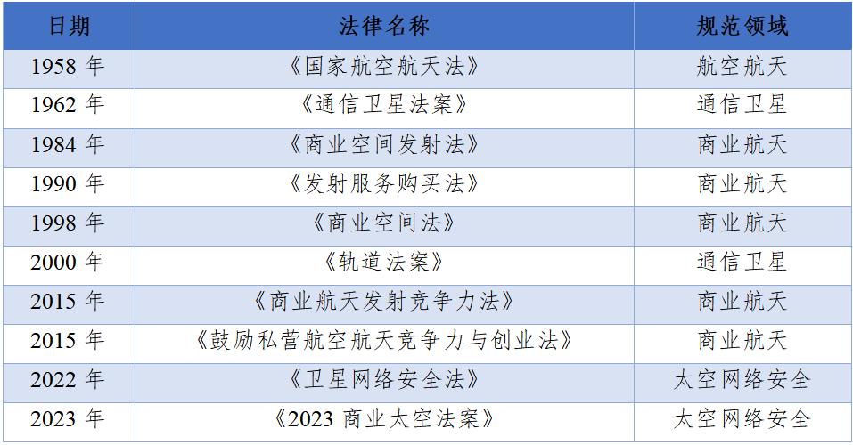 表1 美國衛(wèi)星通信領(lǐng)域部分法律