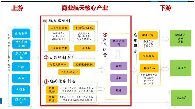 北京商業航天產業鏈齊全,覆蓋衛星制造、火箭制造、地面設備制造、運營與應用服務等全部產業鏈環節,且各環節均聚集了一批優勢企業,實力強勁。上海具有完備的智能制造業產業基礎,近年來積極成立上海垣信、格思航天、航天科技火箭公司等,補齊衛星研制、火箭研制等產業鏈環節。