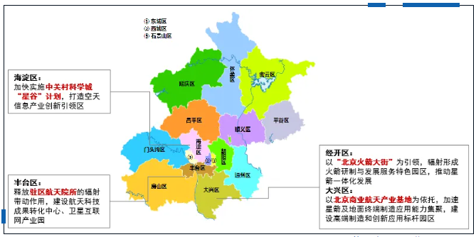 北京立足經開區、大興區商業火箭企業集聚優勢,做強“南箭”;立足海淀區商業衛星企業集聚優勢,做強“北星”,輻射帶動其他各區,形成全市產業協作互補格局。上海圍繞閔行上海航天城、浦東衛星互聯網科研基地、臨港衛星制造集聚區、青浦北斗空間信息應用示范區、松江衛星產業基地等,基本形成“核心主體+東、西兩翼”的商業航天空間布局。