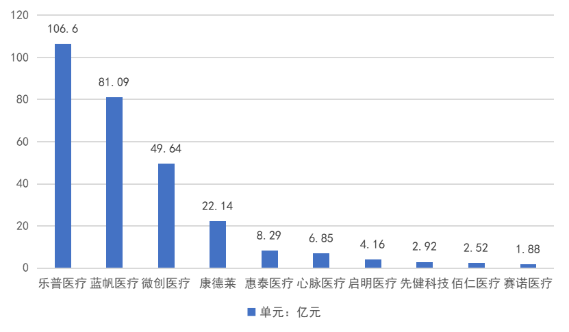 圖8 2021年國產心血管介入器械公司營業收入排名