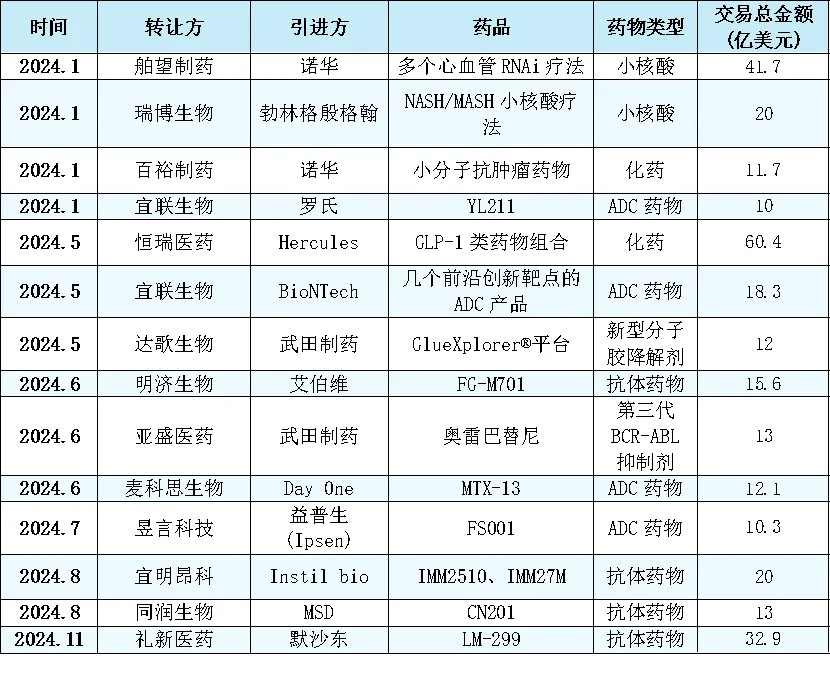 表1 2024年超十億美元出海的國產(chǎn)創(chuàng)新藥榜單